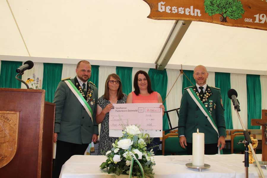 In Gesseln hat der Schützenverein Gesseln 1906 e.V. vom 15. bis zum 17. Juli sein Schützenfest gefeiert. Das Schützenfest begann mit einer Heiligen Messe unter der Leitung von Pastor Dr. Thomas Witt. Zum 19. Mal in Folge wurde auch in diesem Jahr die eingesammelte Kollekte an unser Hospiz gespendet. Wir bedanken uns beim Oberst Michael Hachmeyer für die Anerkennung und Wertschätzung der Arbeit, die unsere Kolleginnen täglich leisten. Die Spende haben zwei unserer Kolleginnen persönlich entgegennehmen dürfen.